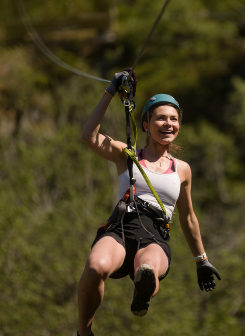 The Via Ferrata consists of two parts that both traverse along the Geiranger river. Approximately halfway, you cross the river back and forth on Nepalese bridges via a tower. Part two of the ferrata offers a fork; go to the right for an easier climb or to the left for a more challenging route. After completing the Via Ferrata, you walk along a ferrata trail where you cross the Geiranger river just above The Dynamite Waterfall. On this bridge you get very close to the forces of the river. On the other side, you walk through the deciduous forest for a short distance before the final Nepalese bridge takes you over to the starting point for the zipline.